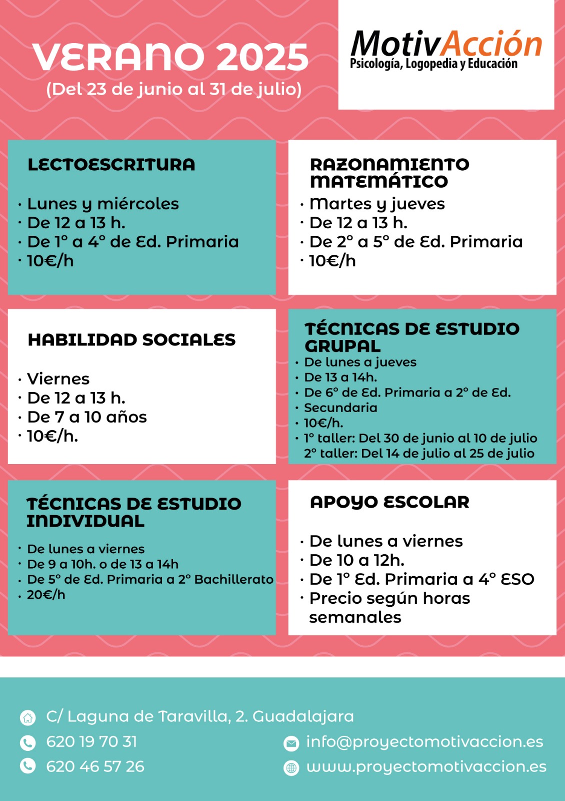 Se acercan las vacaciones escolares y con ellas la organización para las actividades durante estos meses de verano. Aquí os dejamos las actividades programadas desde el 23 de junio al 31 de julio de 2025. Recordaros que además de estas actividades siguen realizándose las terapias de logopedia y psicología.